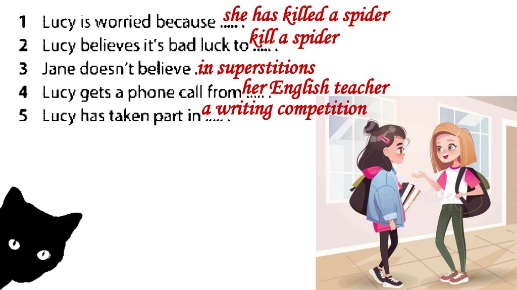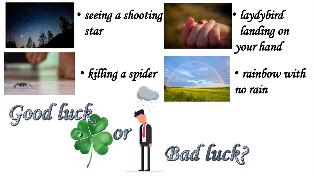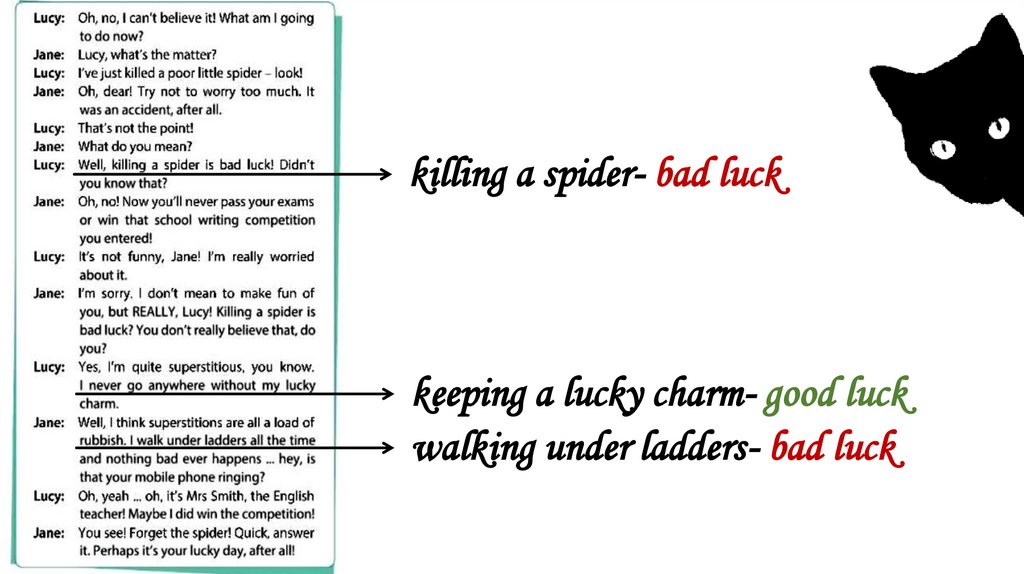 killing a spider- bad luckkeeping a lucky charm- good luck
