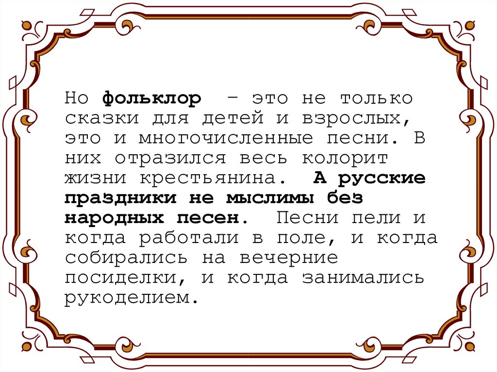 Но фольклор – это не толькосказки для детей и взрослых,