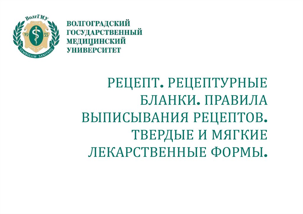 1. РЕЦЕПТ. РЕЦЕПТУРНЫЕ БЛАНКИ. ПРАВИЛА ВЫПИСЫВАНИЯ РЕЦЕПТОВ. ТВЕРДЫЕ И МЯГКИЕ ЛЕКАРСТВЕННЫЕ ФОРМЫ.