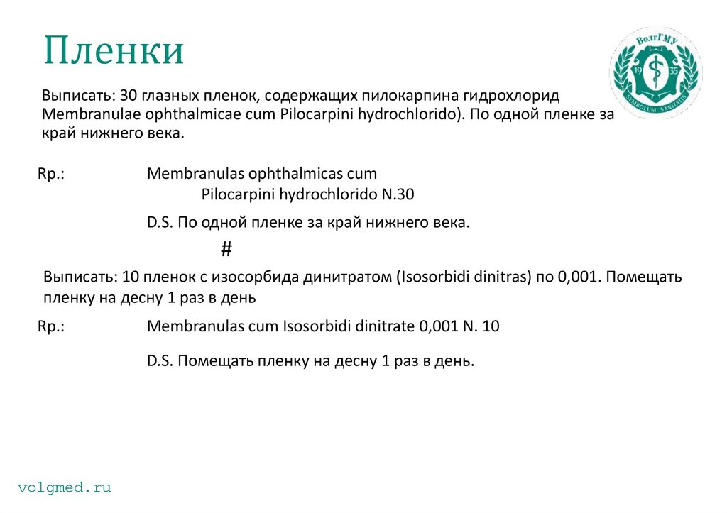 Membranulae ophthalmicae cum Pilocarpini hydrochlorido). По одной пленке за