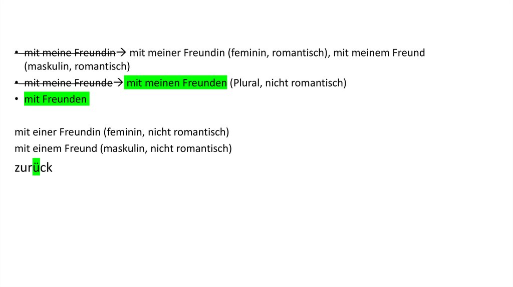 • mit meine Freundin mit meiner Freundin (feminin, romantisch), mit meinem Freund(maskulin, romantisch)