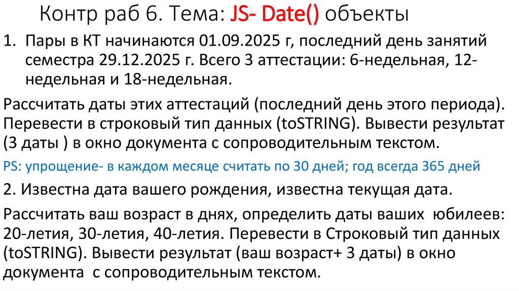 1. Контр раб 6. Тема: JS- Date() объекты
