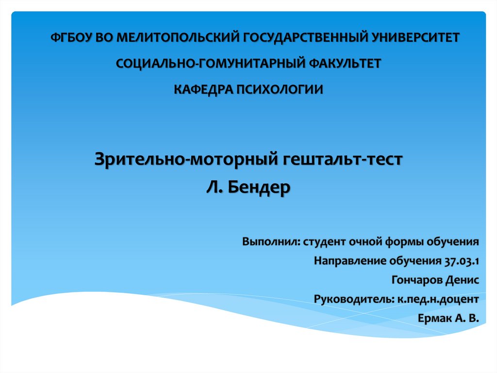 Бендер гештальт-теста, анализ проведенных на его основе исследований, а также были