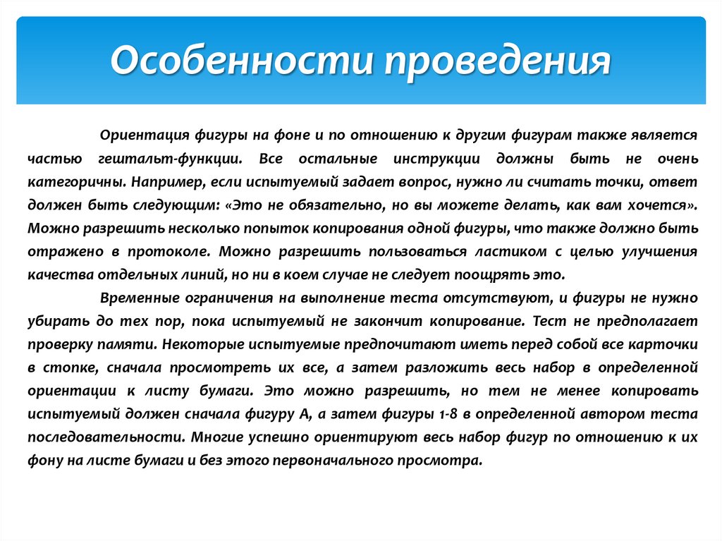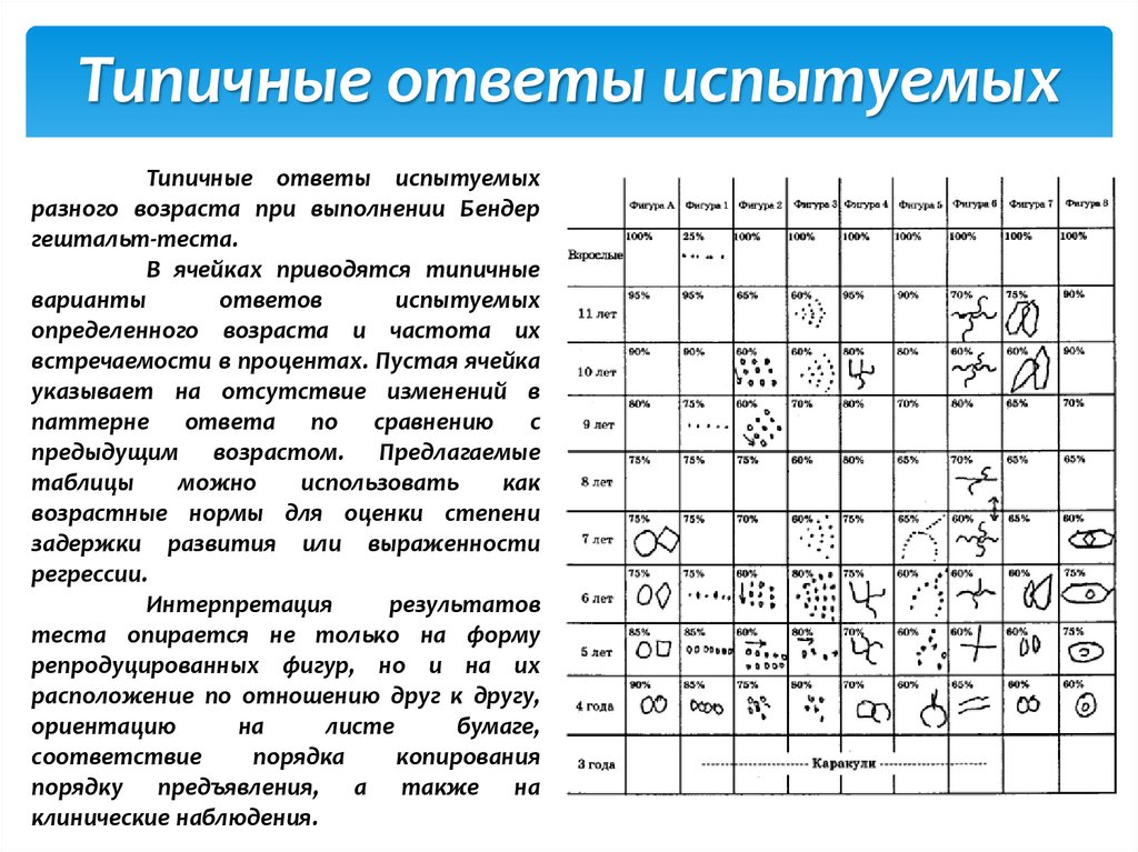 высокой валидности и надежности. Бендер гештальттест входит в основную обойму диагностических тестов,
