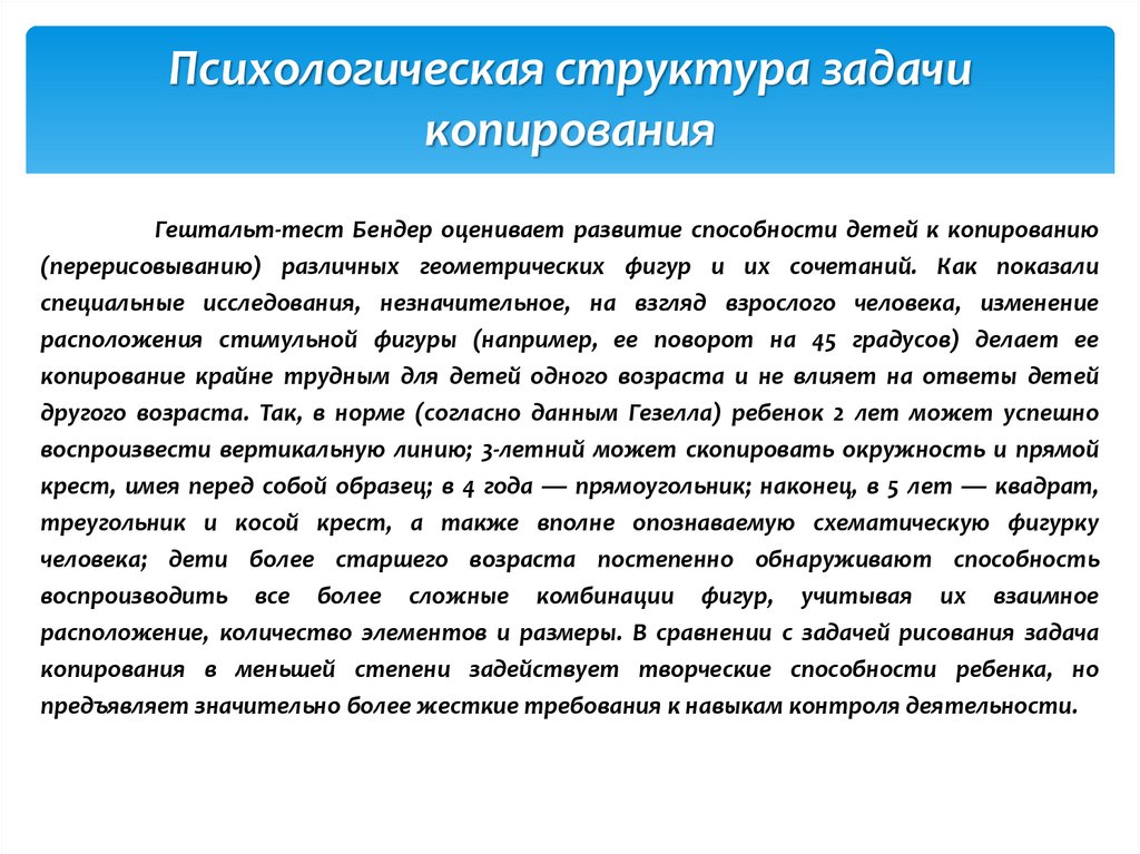Гештальт-тест Бендер оценивает развитие способности детей к копированию