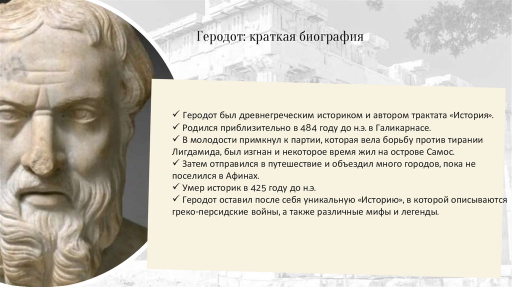 Геродот: краткая биографияГеродот был древнегреческим историком и автором трактата «История».