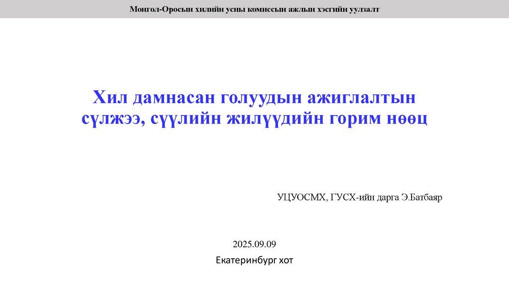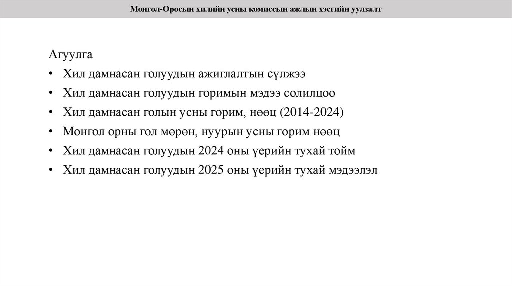 Монгол-Оросын хилийн усны комиссын ажлын хэсгийн уулзалтАгуулга