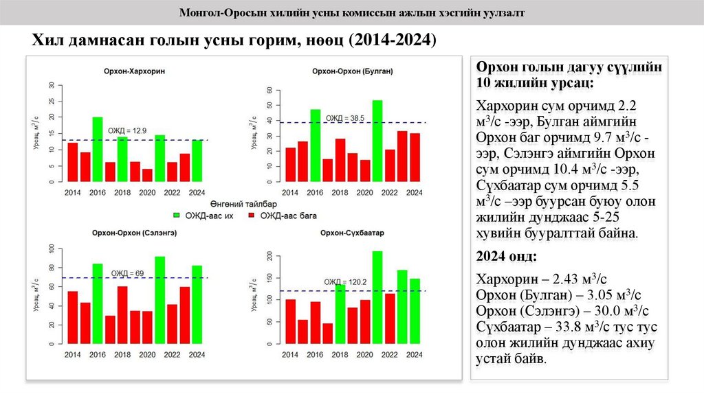 • Хил дамнасан голын усны горим, нөөц (2014-2024)