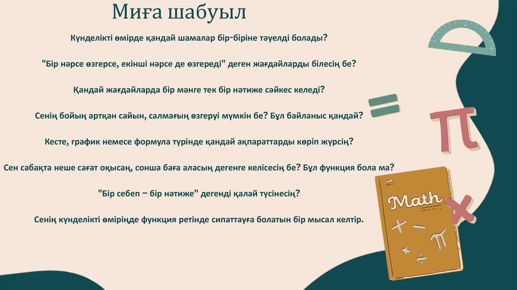 Миға шабуылКүнделікті өмірде қандай шамалар бір-біріне тәуелді болады?