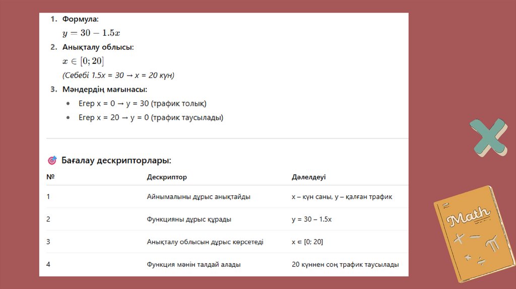 Сен сабақта неше сағат оқысаң, сонша баға аласың дегенге келісесің бе? Бұл функция бола ма?