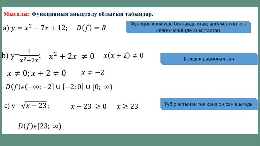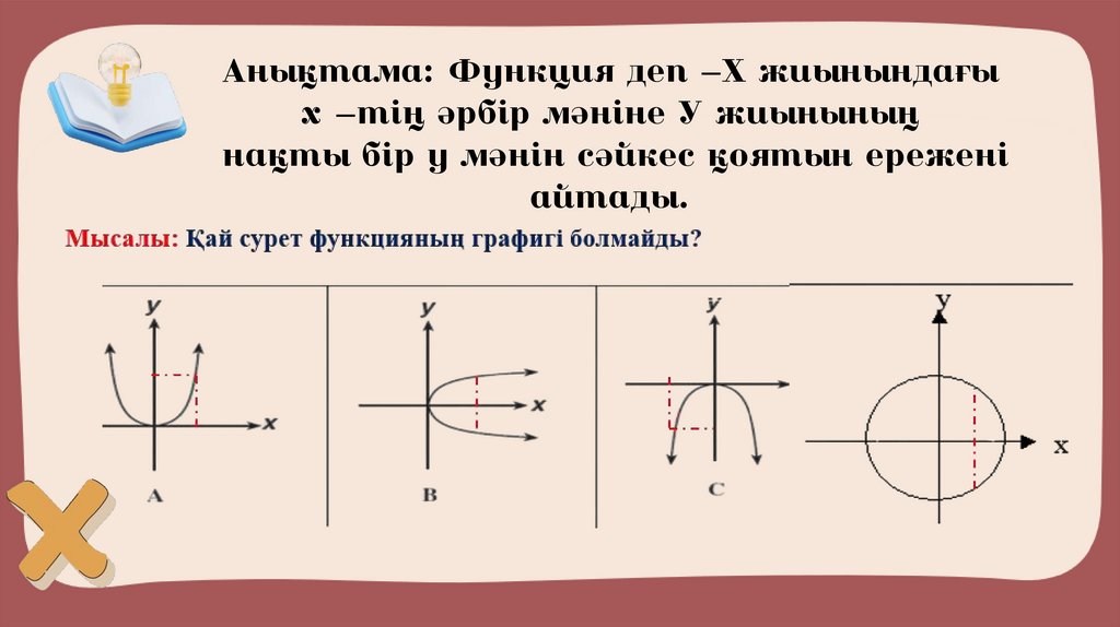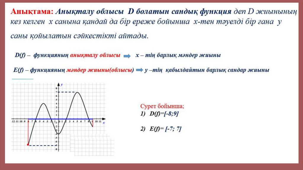 Анықтама: Функция деп –Х жиынындағых –тің әрбір мәніне У жиынының