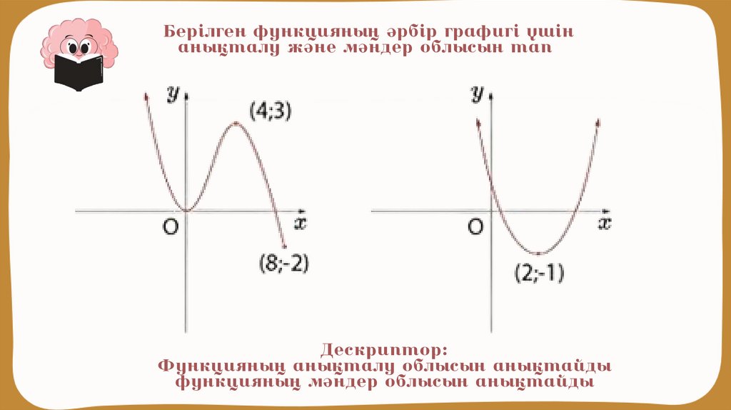 Берілген функцияның әрбір графигі үшінанықталу және мәндер облысын тап