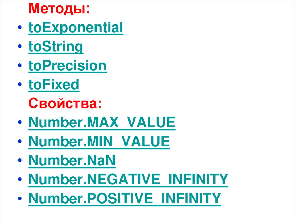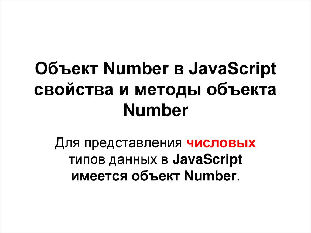 1. Объект Number в JavaScript свойства и методы объекта Number