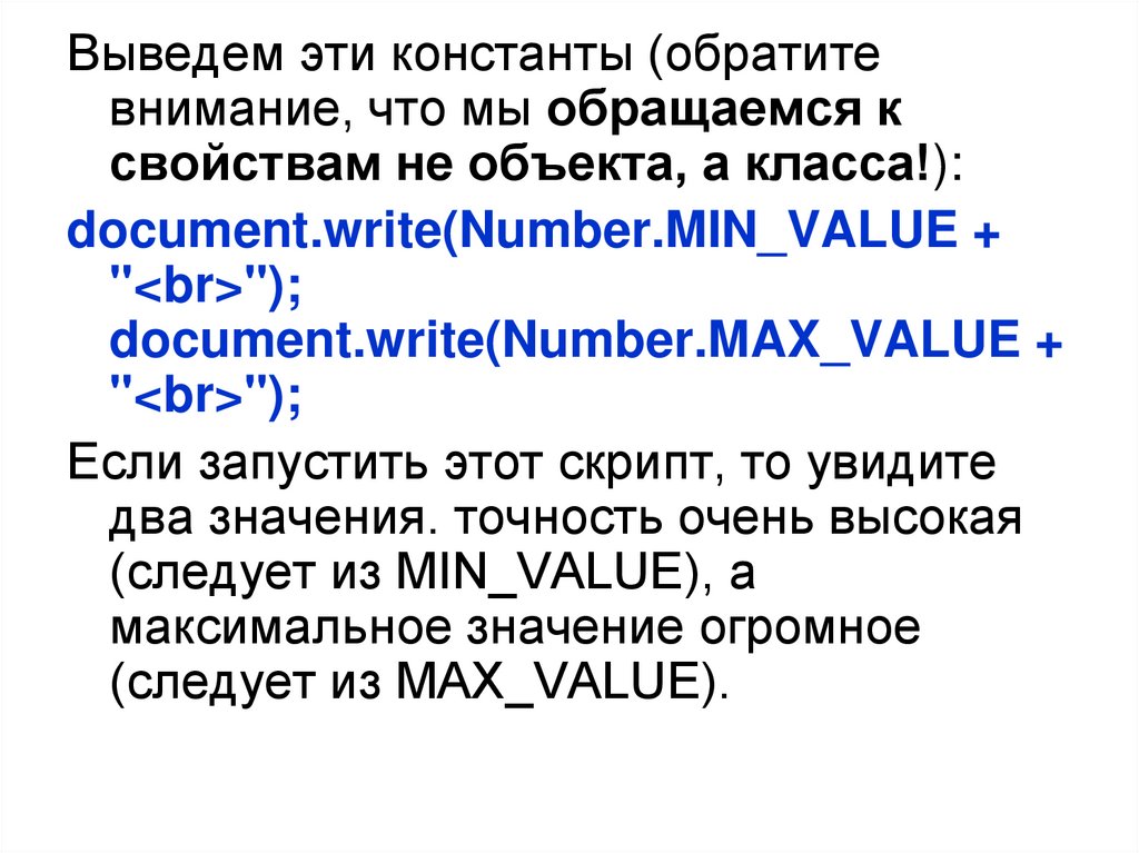 свойства-константы:MIN_VALUE и MAX_VALUE - показывают