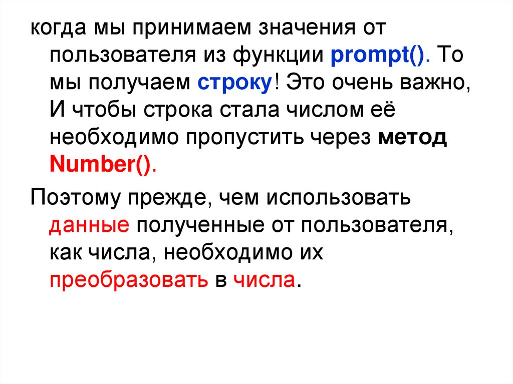 когда мы принимаем значения отпользователя из функции prompt(). То