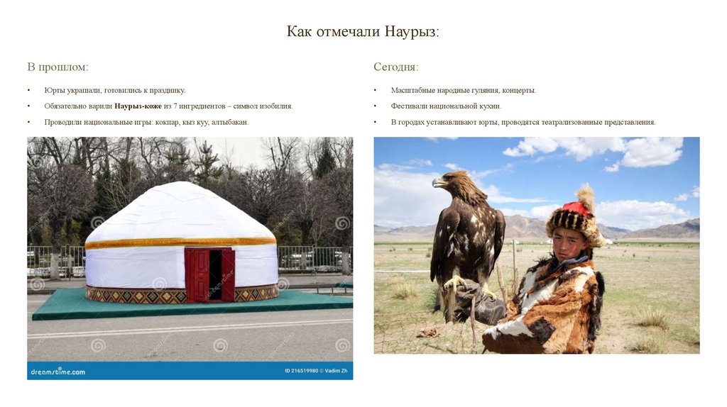Традиционно готовят наурыз-коже, устраивают народные игры, айтысы, ставят юрты и