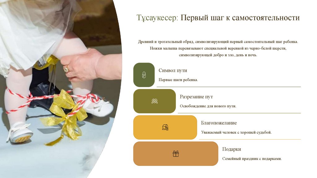 Тұсаукесер: Первый шаг к самостоятельностиДревний и трогательный обряд, символизирующий первый самостоятельный шаг ребенка.