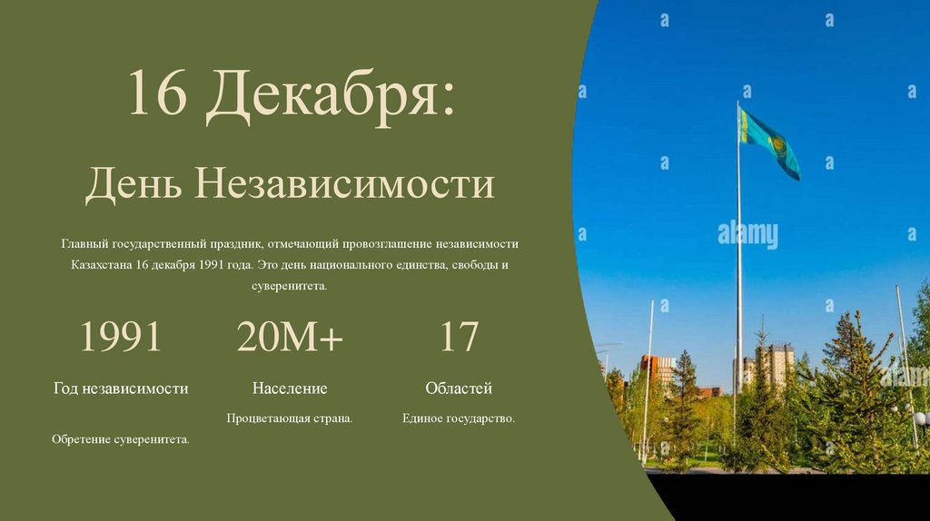Казахстана 16 декабря 1991 года. Это день национального единства, свободы и