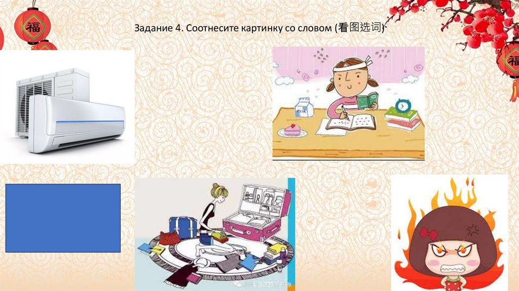 Задание 4. Соотнесите картинку со словом (看图选词)恨 复习
