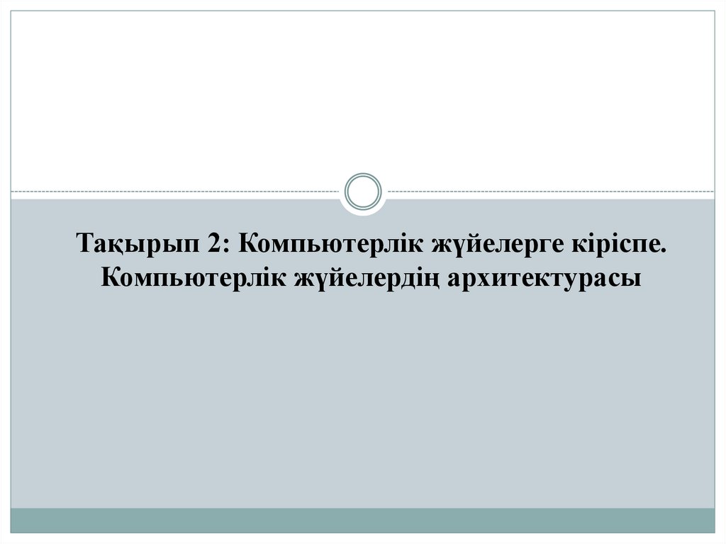 Тақырып 2: Компьютерлік жүйелерге кіріспе. Компьютерлік жүйелердің архитектурасы