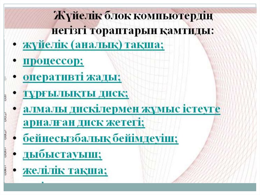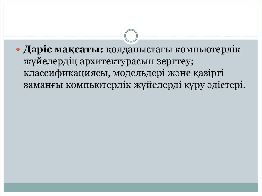 Дәріс мақсаты: қолданыстағы компьютерлікжүйелердің архитектурасын зерттеу;