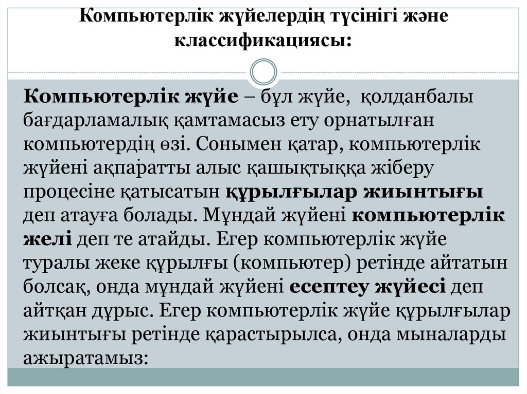 Компьютерлік жүйелердің түсінігі жәнеклассификациясы: