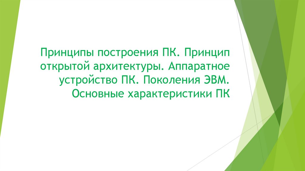Принципы построения ПК. Принцип открытой архитектуры. Аппаратное устройство ПК. Поколения ЭВМ. Основные характеристики ПК