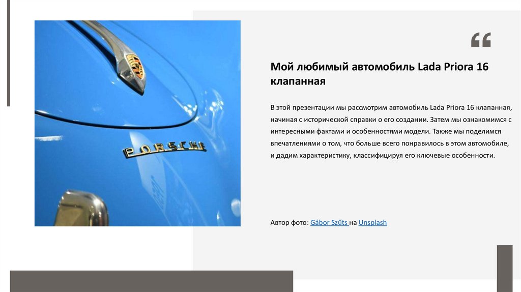 В этой презентации мы рассмотрим автомобиль Lada Priora 16 клапанная,
