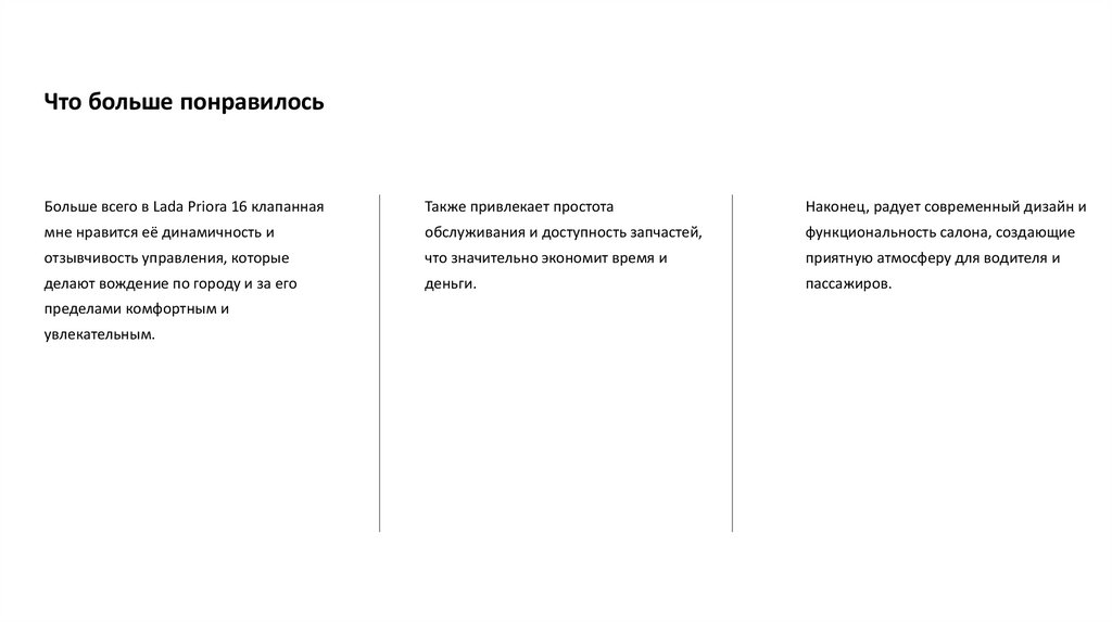 впечатлениями о том, что больше всего понравилось в этом автомобиле,