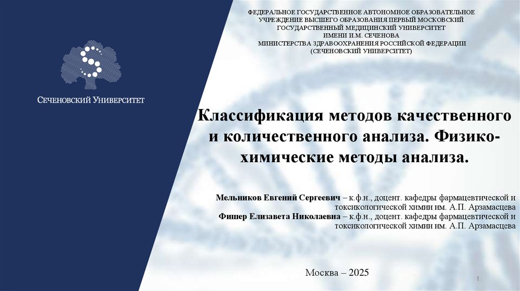 1. Мельников Евгений Сергеевич – к.ф.н., доцент. кафедры фармацевтической и токсикологической химии им. А.П. Арзамасцева Фишер