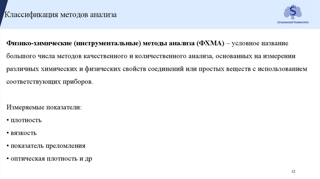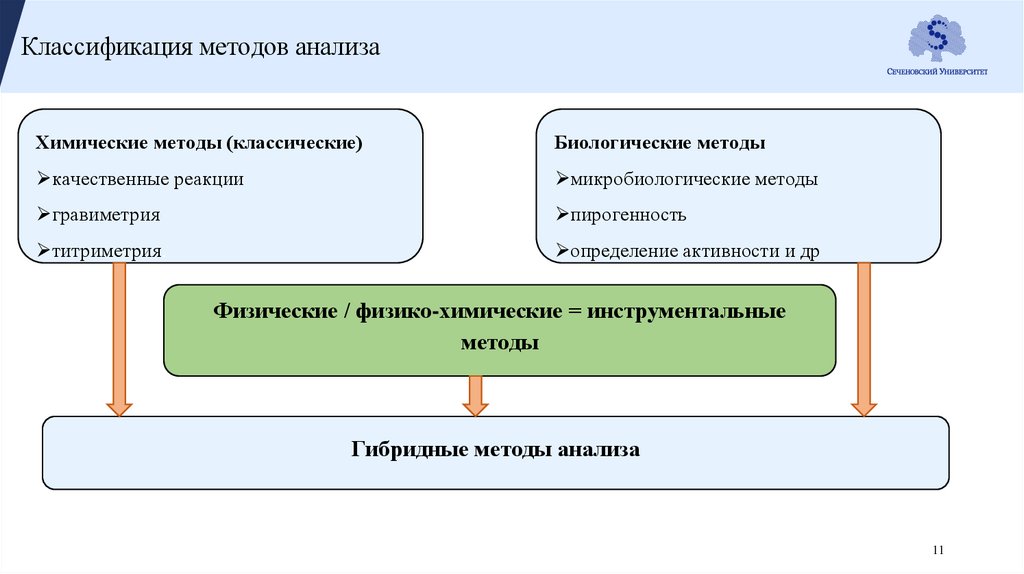 Классификация методов анализаФизико-химические (инструментальные) методы анализа (ФХМА) – условное название