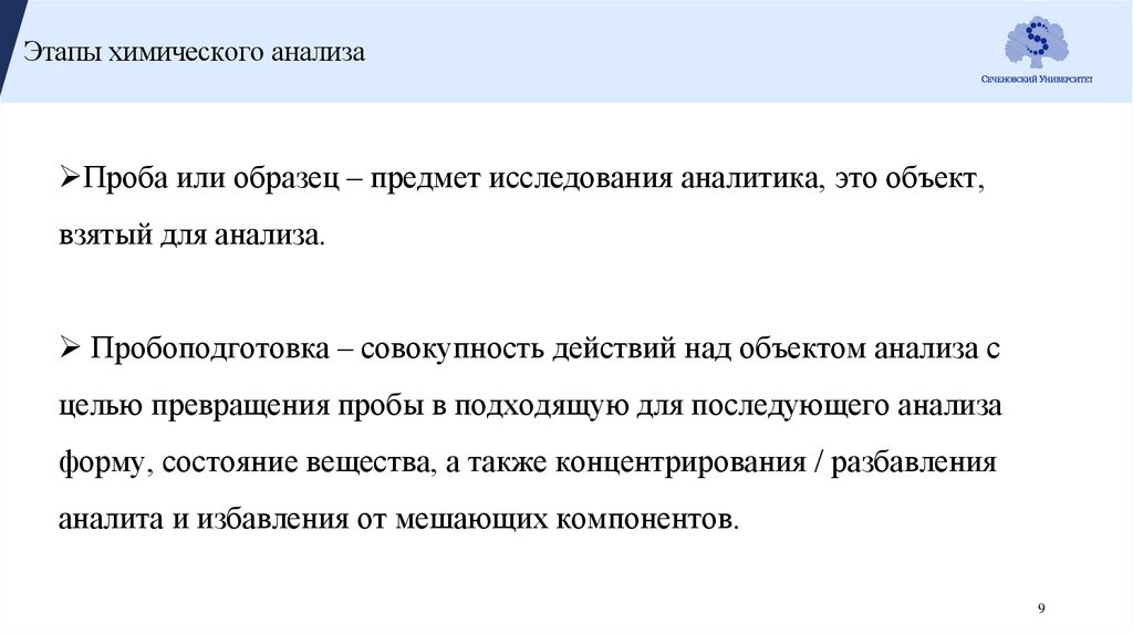 Этапы химического анализаПроба или образец – предмет исследования аналитика, это объект,