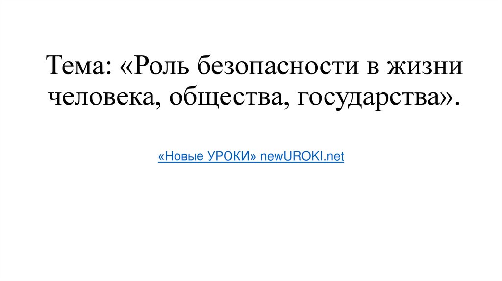 1. Тема: «Роль безопасности в жизни человека, общества, государства».