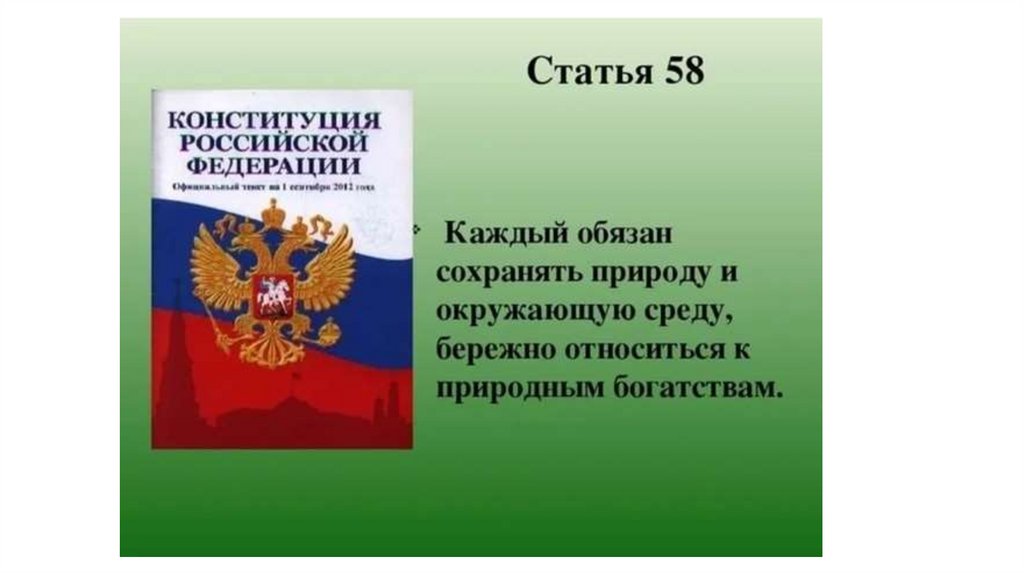 • интересы России в экологической сфере — сохранение и оздоровление окружающей