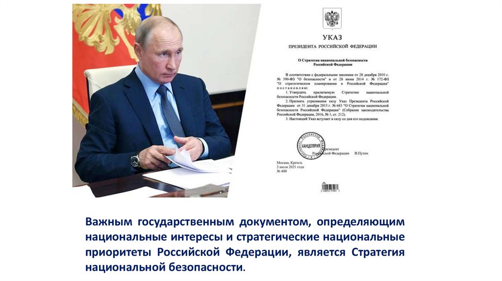 Важным государственным документом, определяющимнациональные интересы и стратегические национальные