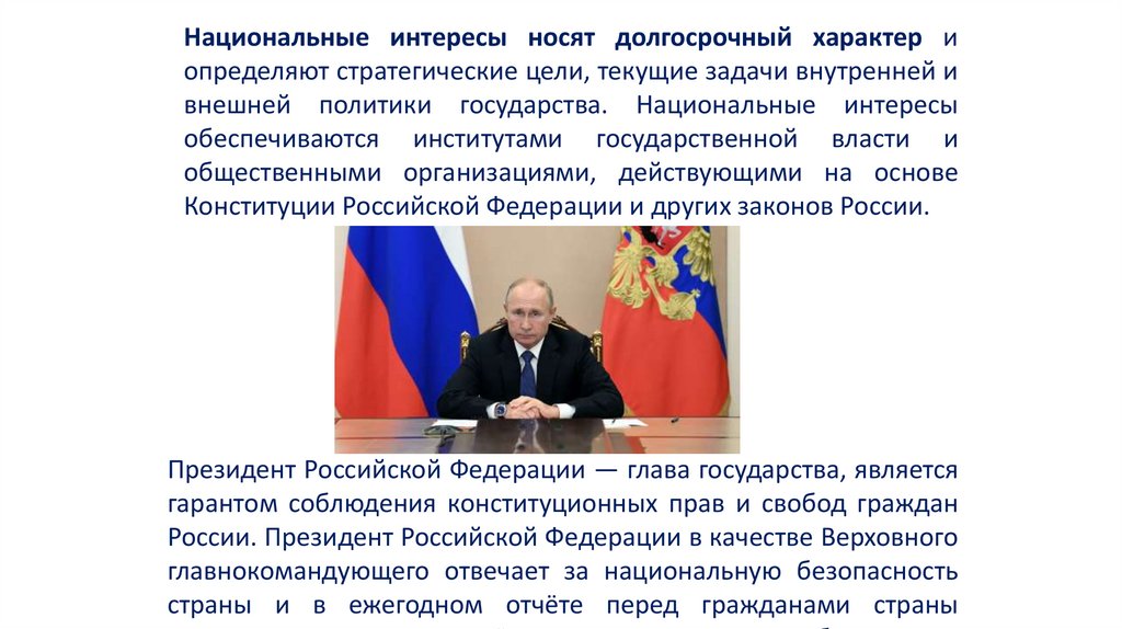 Национальные интересы носят долгосрочный характер иопределяют стратегические цели, текущие задачи внутренней и