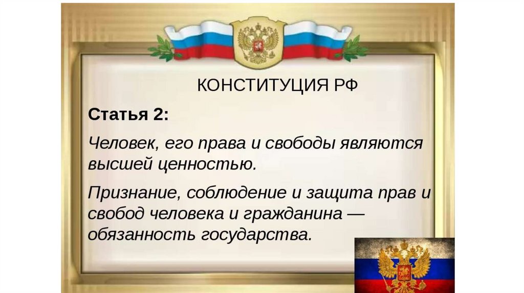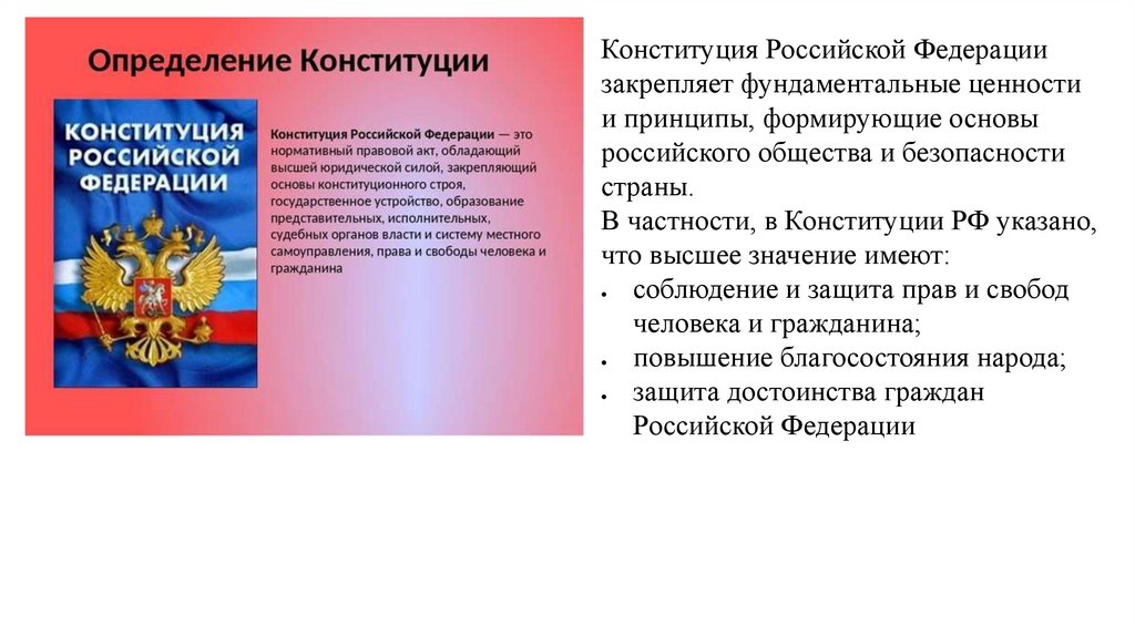Конституция Российской Федерациизакрепляет фундаментальные ценности
