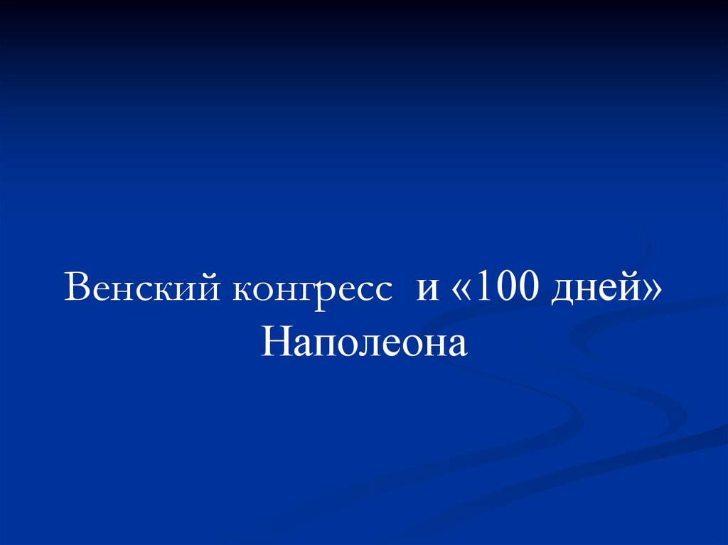 Венский конгресс и «100 дней»Наполеона