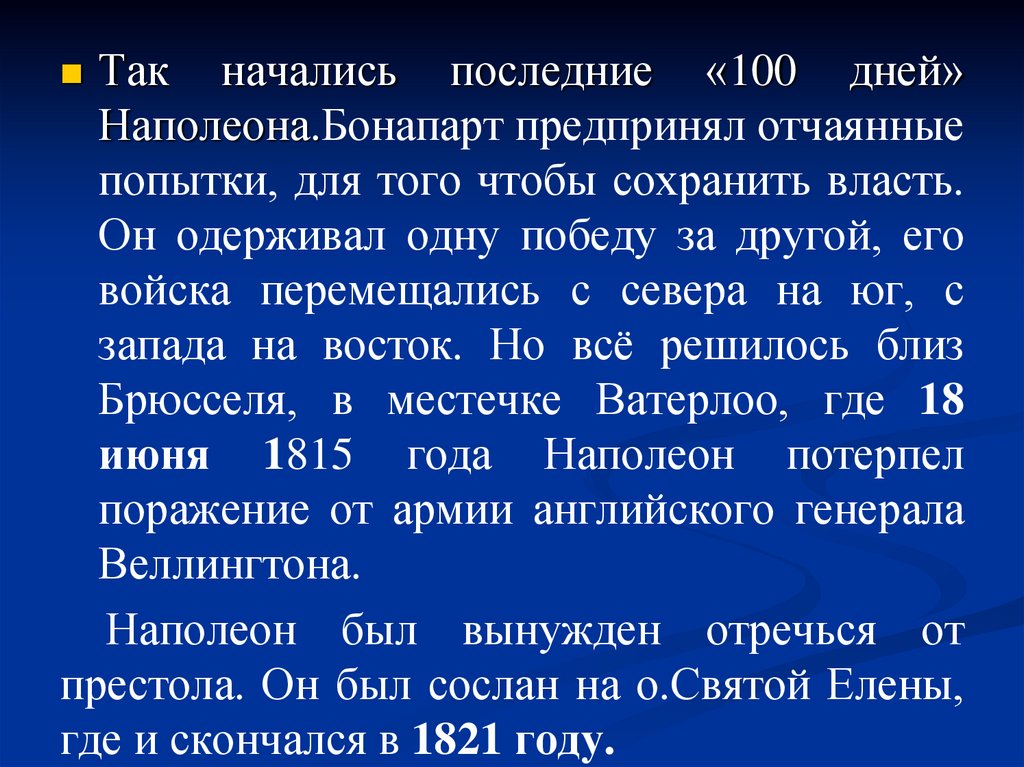 престола. Он был сослан на о.Святой Елены,