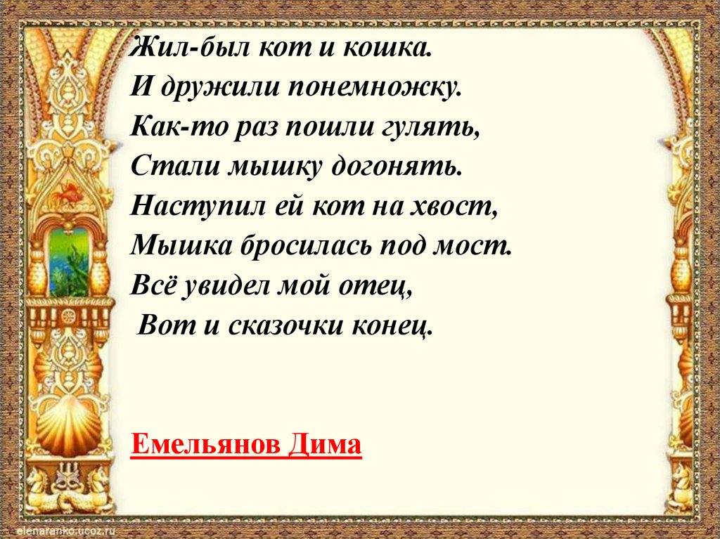 Жил-был царь, у царя был двор,На дворе был кол, на колу мочало,