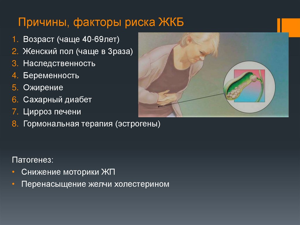 Причины, факторы риска ЖКБ1. Возраст (чаще 40-69лет)