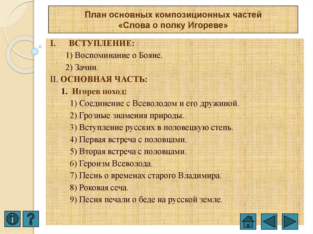 27. Контрольные вопросы по «Слову о полку Игореве»