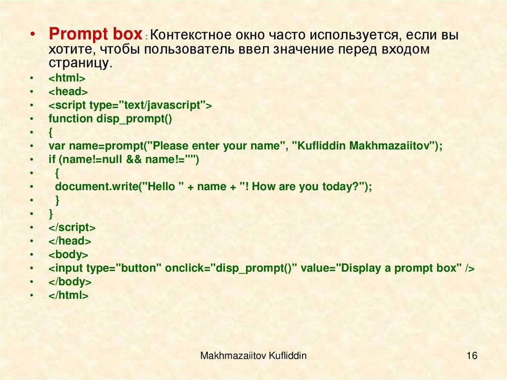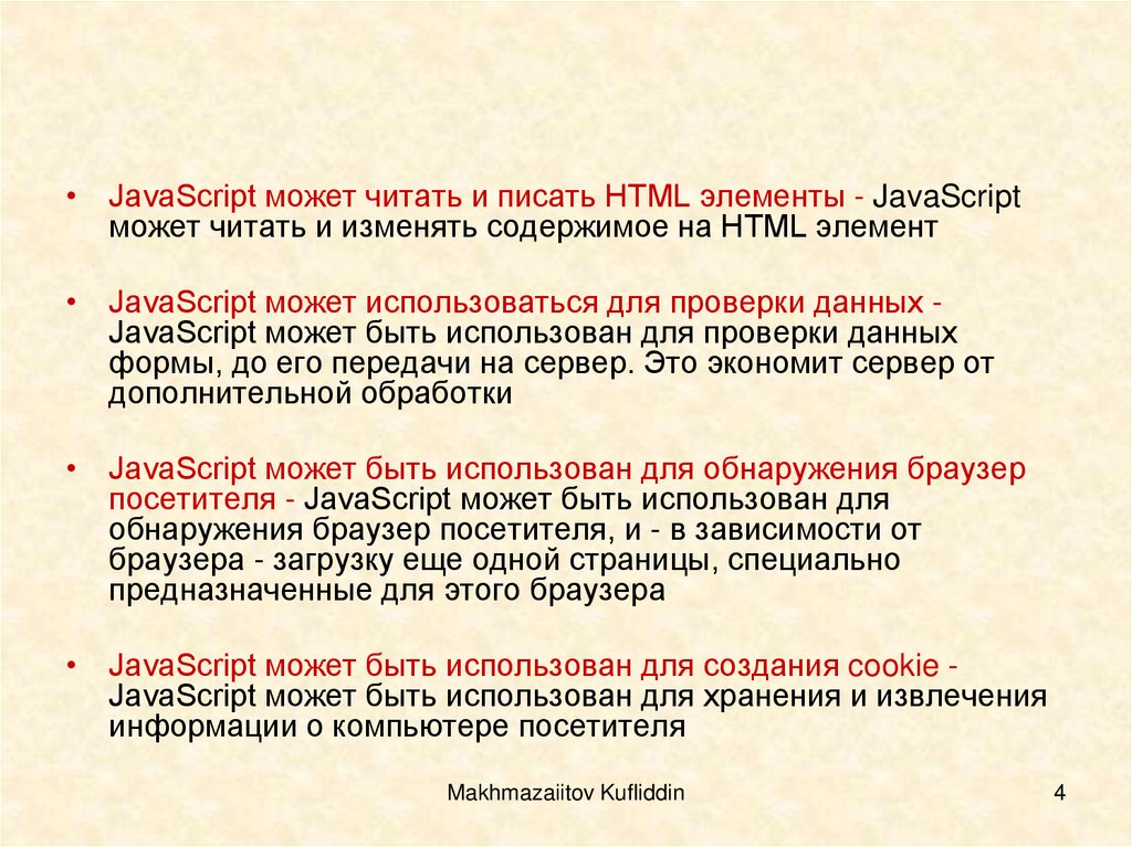 • JavaScript дает HTML дизайнерам инструментпрограммирования - HTML авторы, как правило, не
