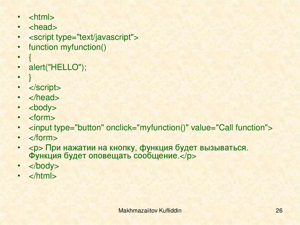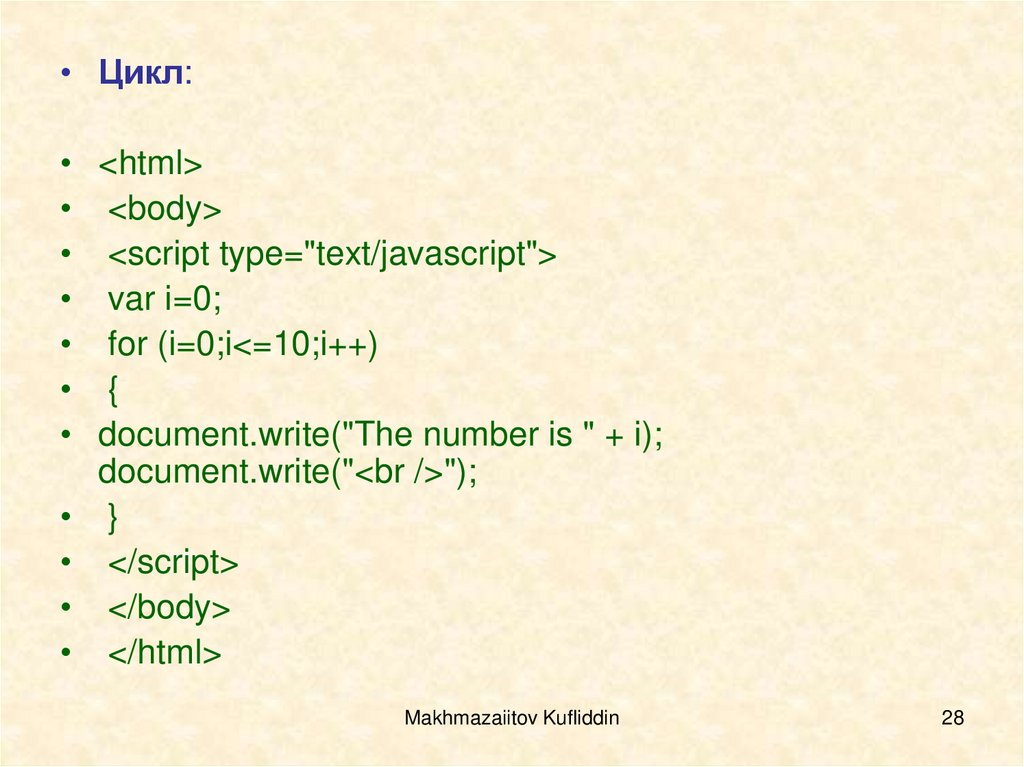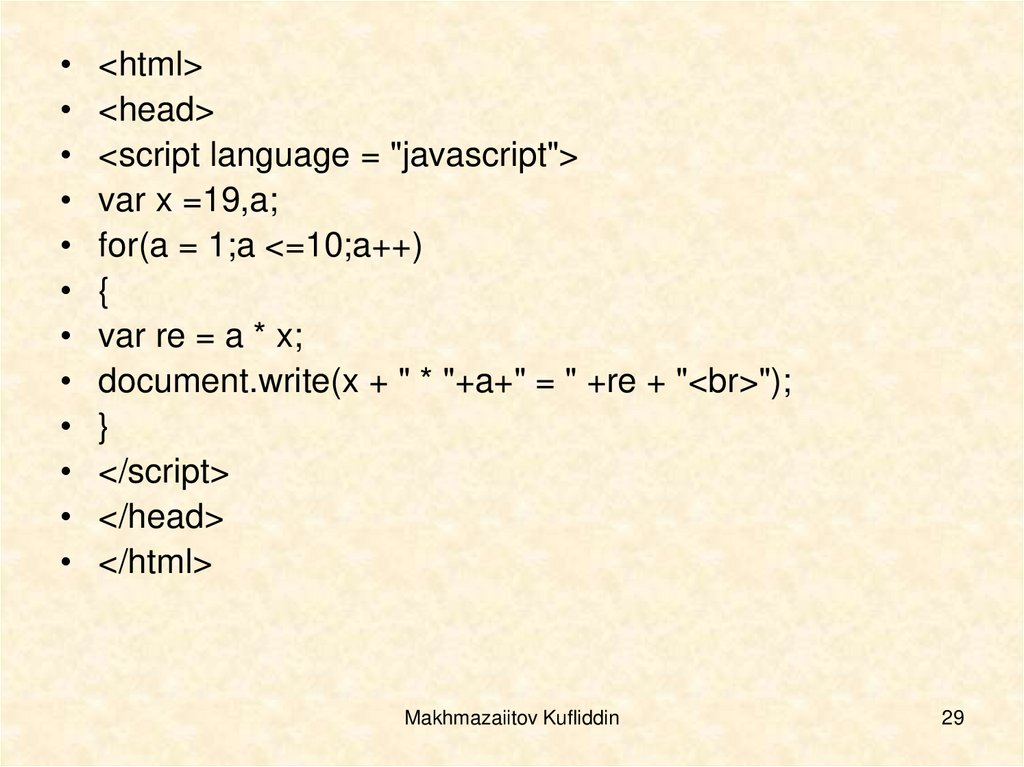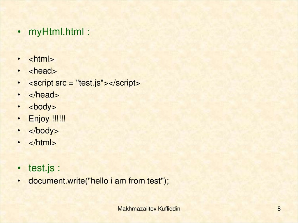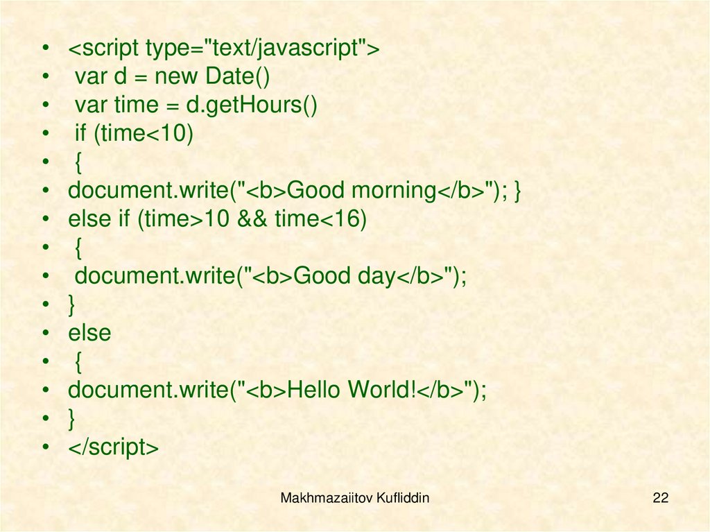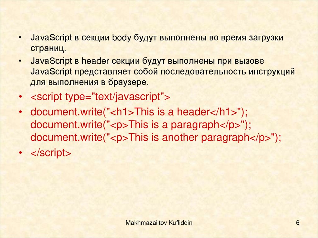 • JavaScript в секции body будут выполнены во время загрузкистраниц.
