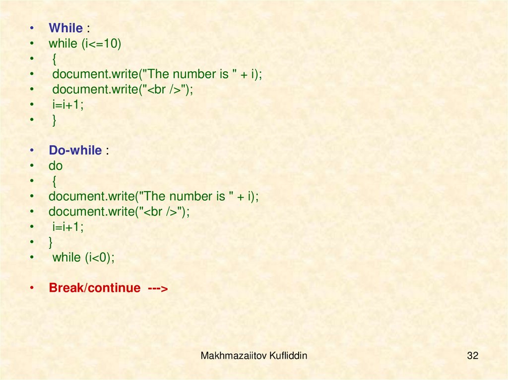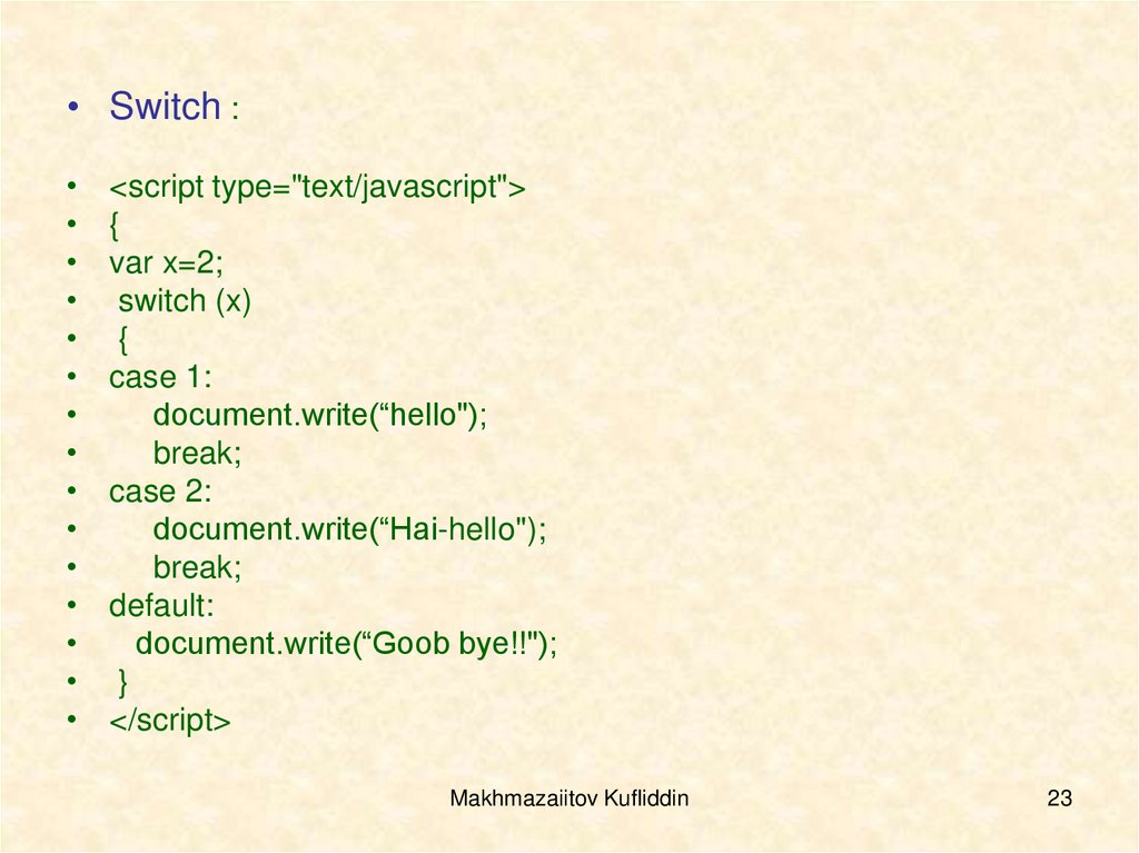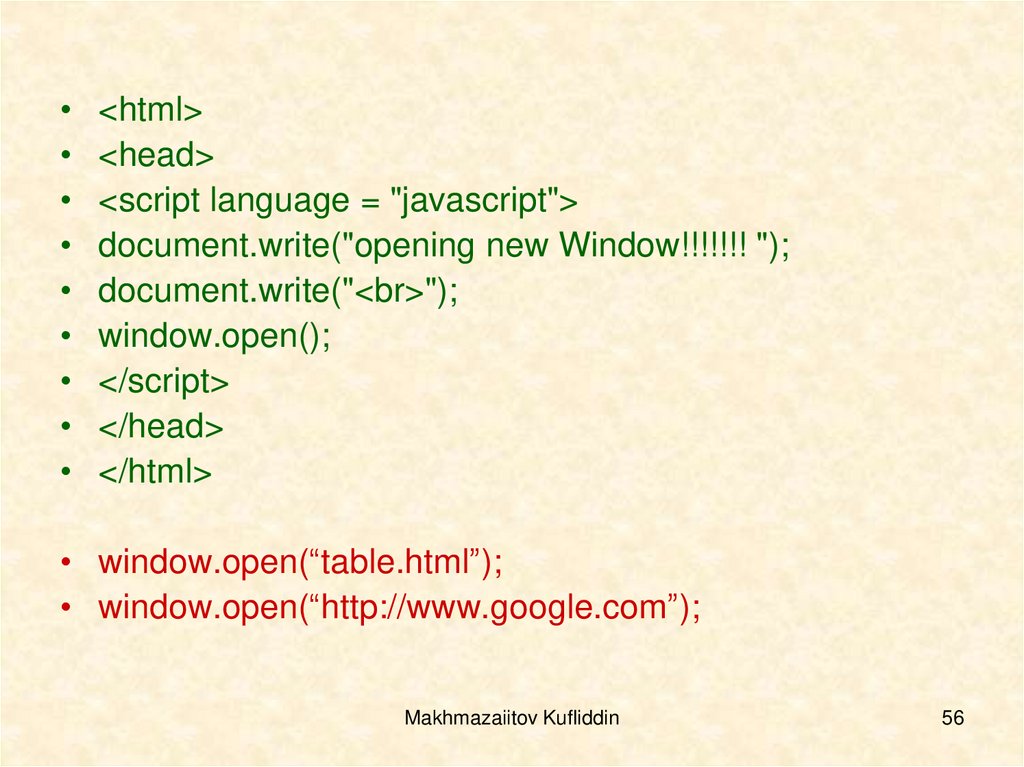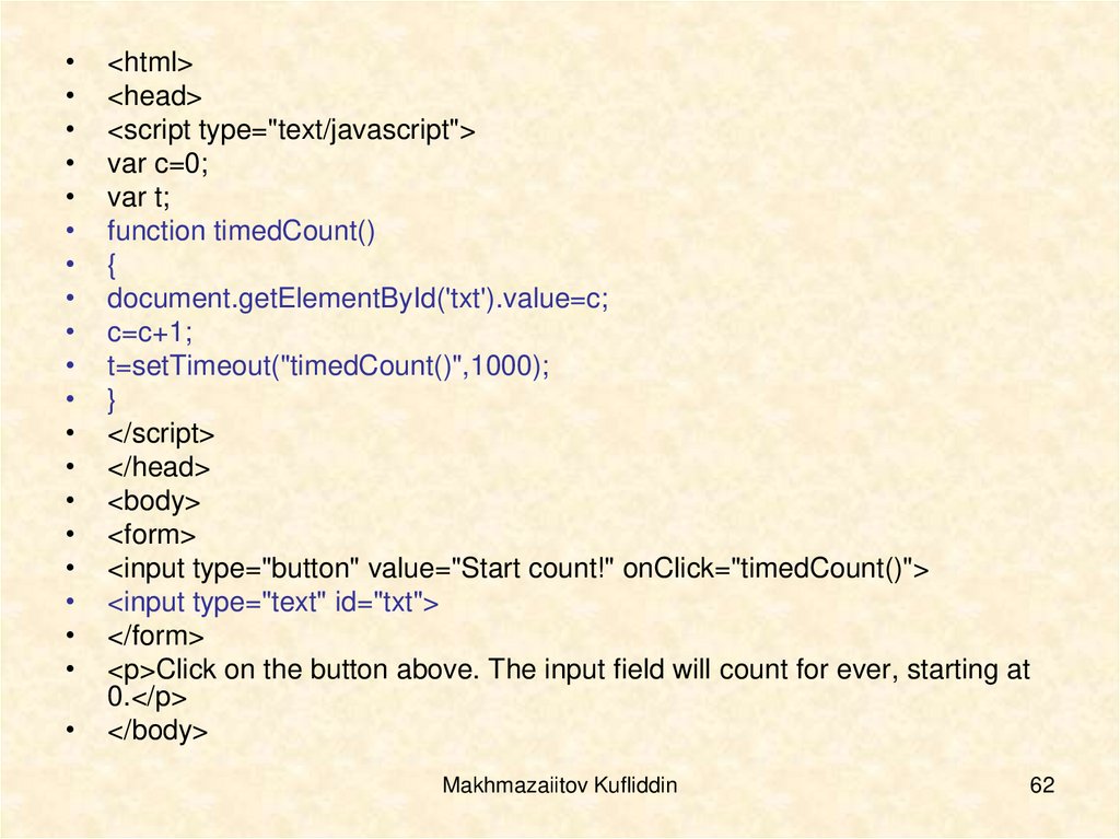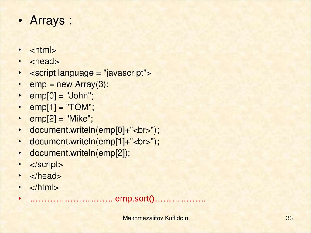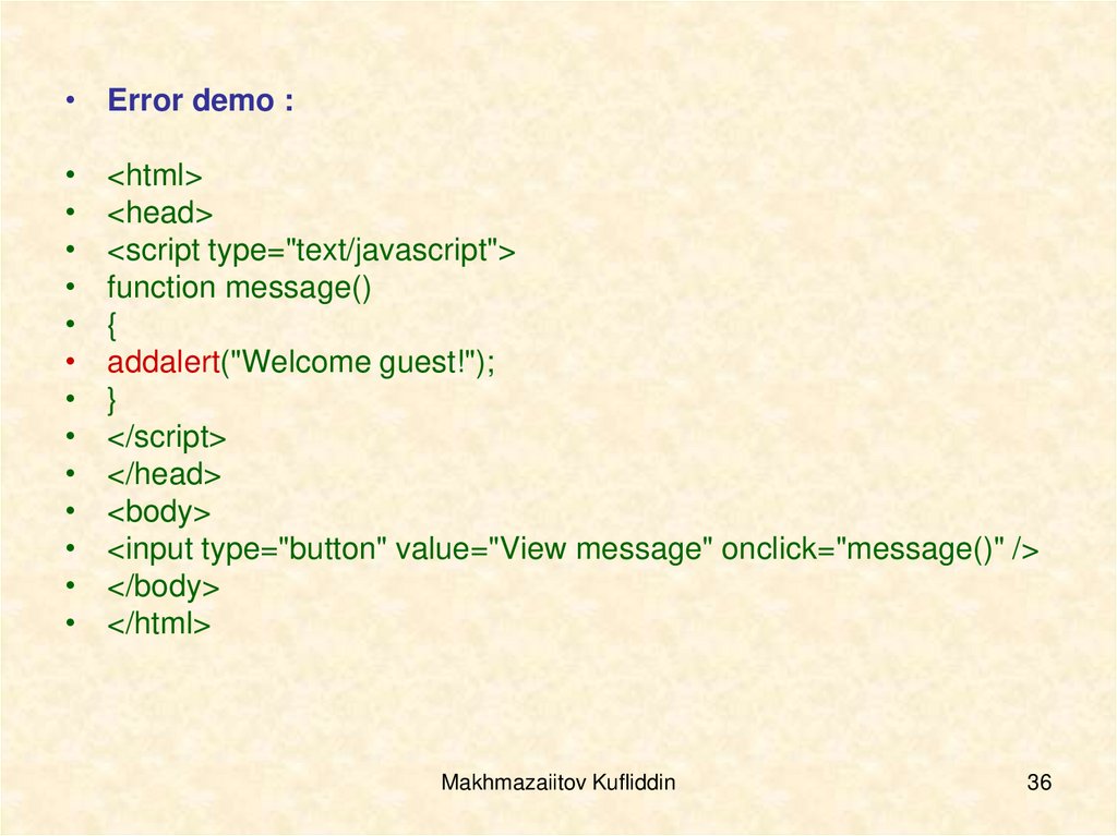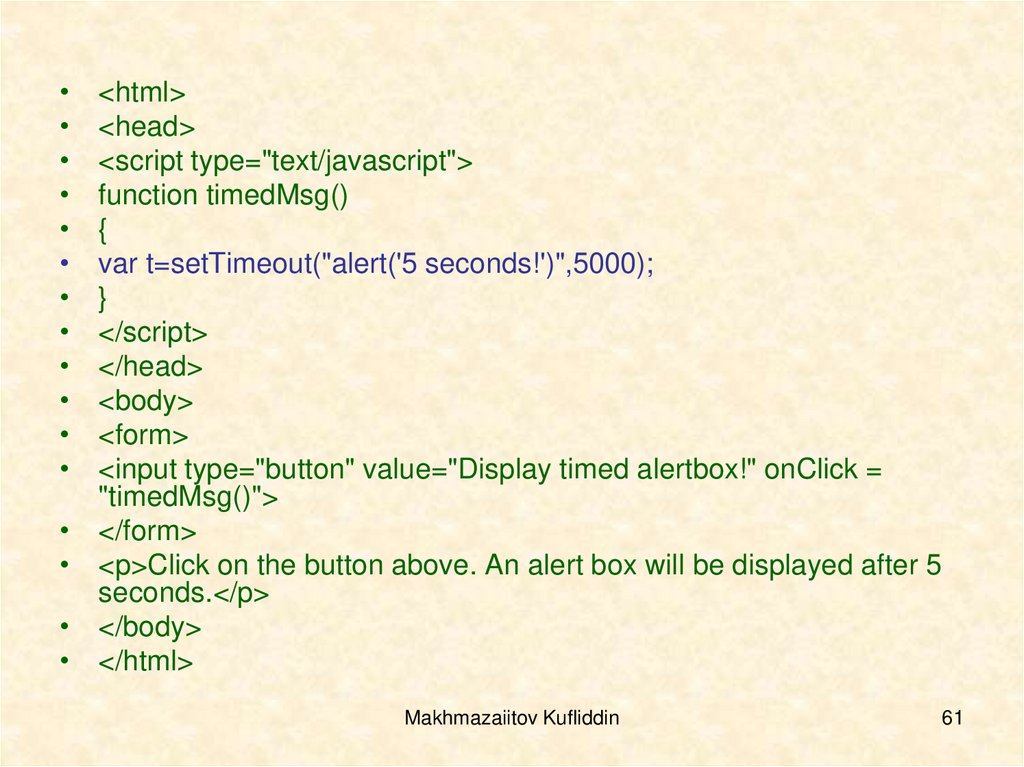 • JavaScript в секции body будут выполнены во время загрузкистраниц.