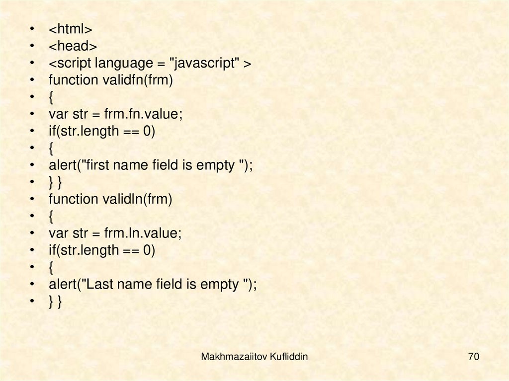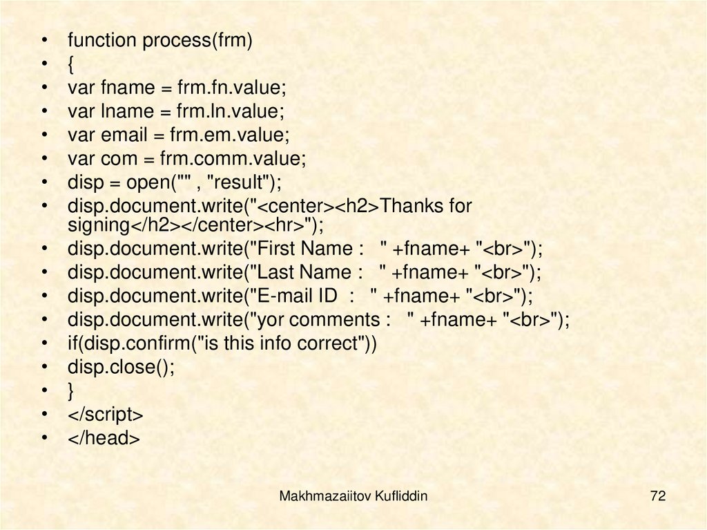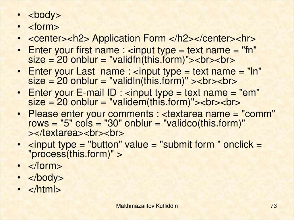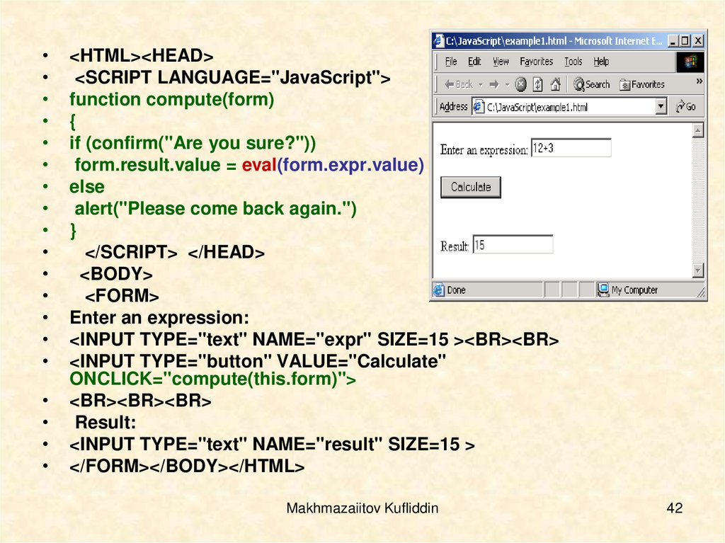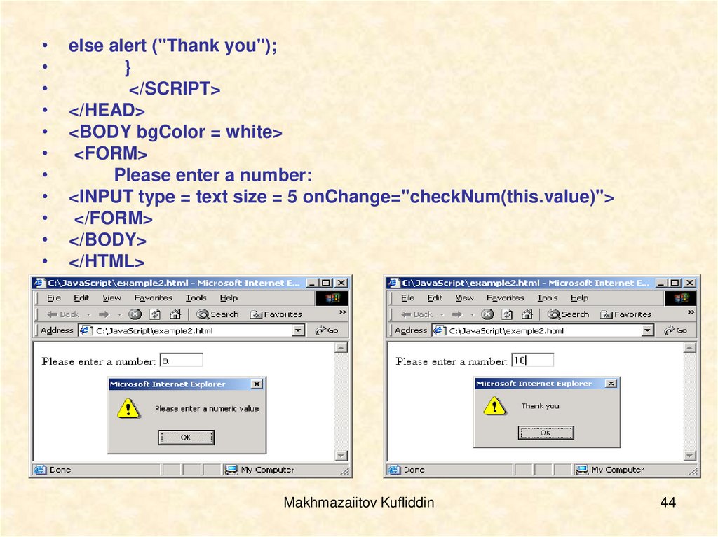 • JavaScript может использоваться для проверки данных JavaScript может быть использован для проверки данных