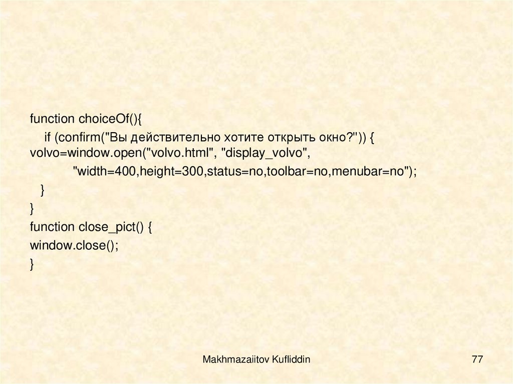 <input type="button" value="Открыть окно" onClick="choiceOf();">