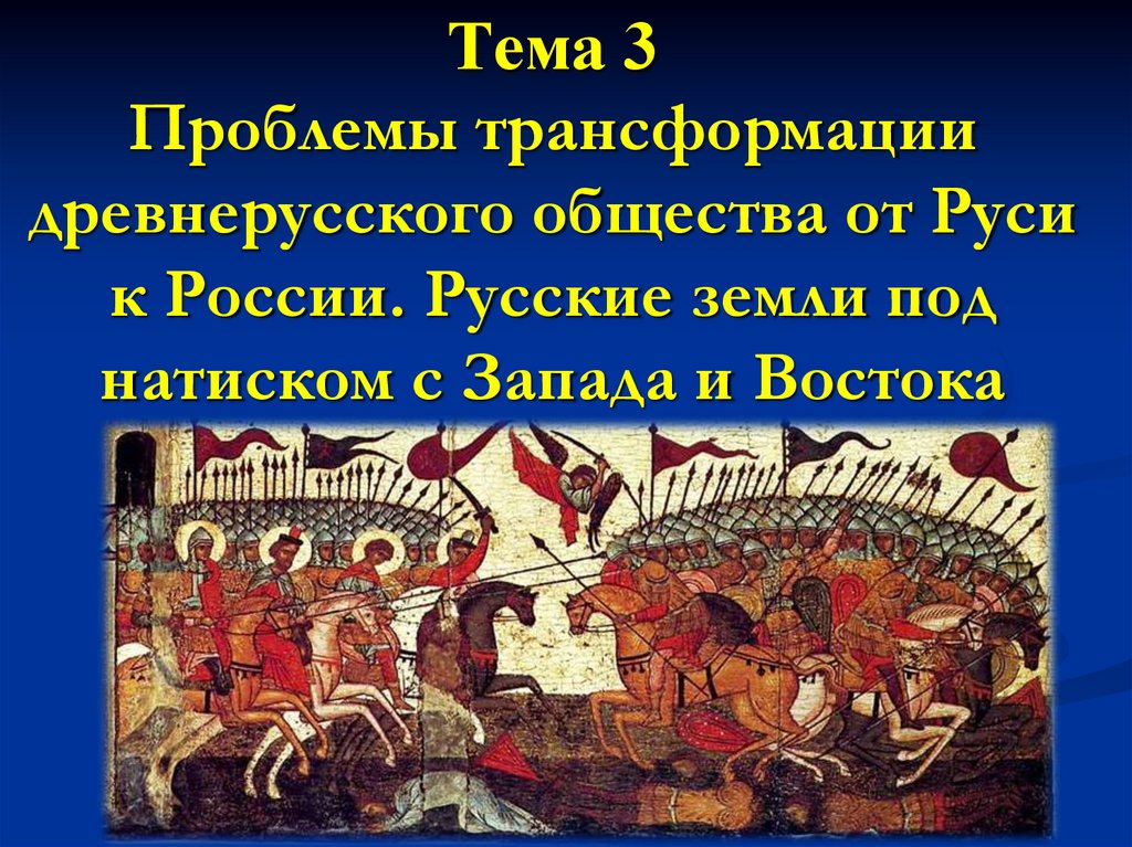 1. Тема 3 Проблемы трансформации древнерусского общества от Руси к России. Русские земли под натиском с Запада и Востока