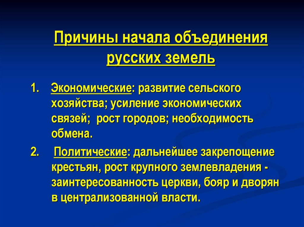 3. Внешнеполитические: ослабление ЗолотойОрды; необходимость преодоления