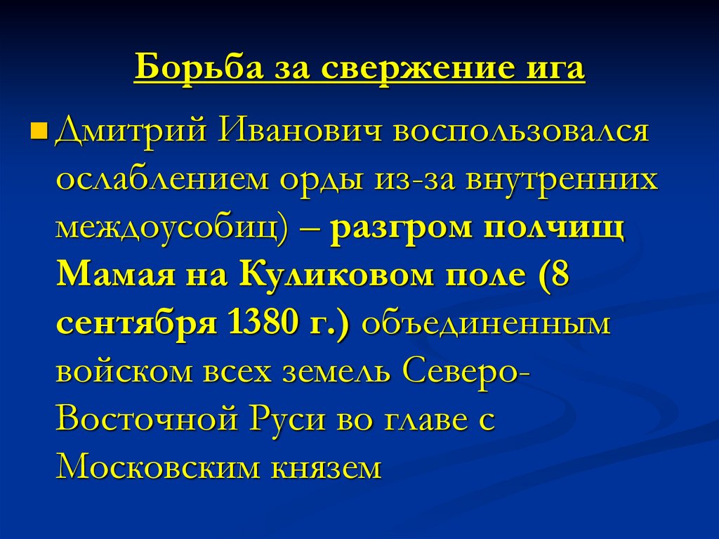 Борьба за свержение игаДмитрий Иванович воспользовался